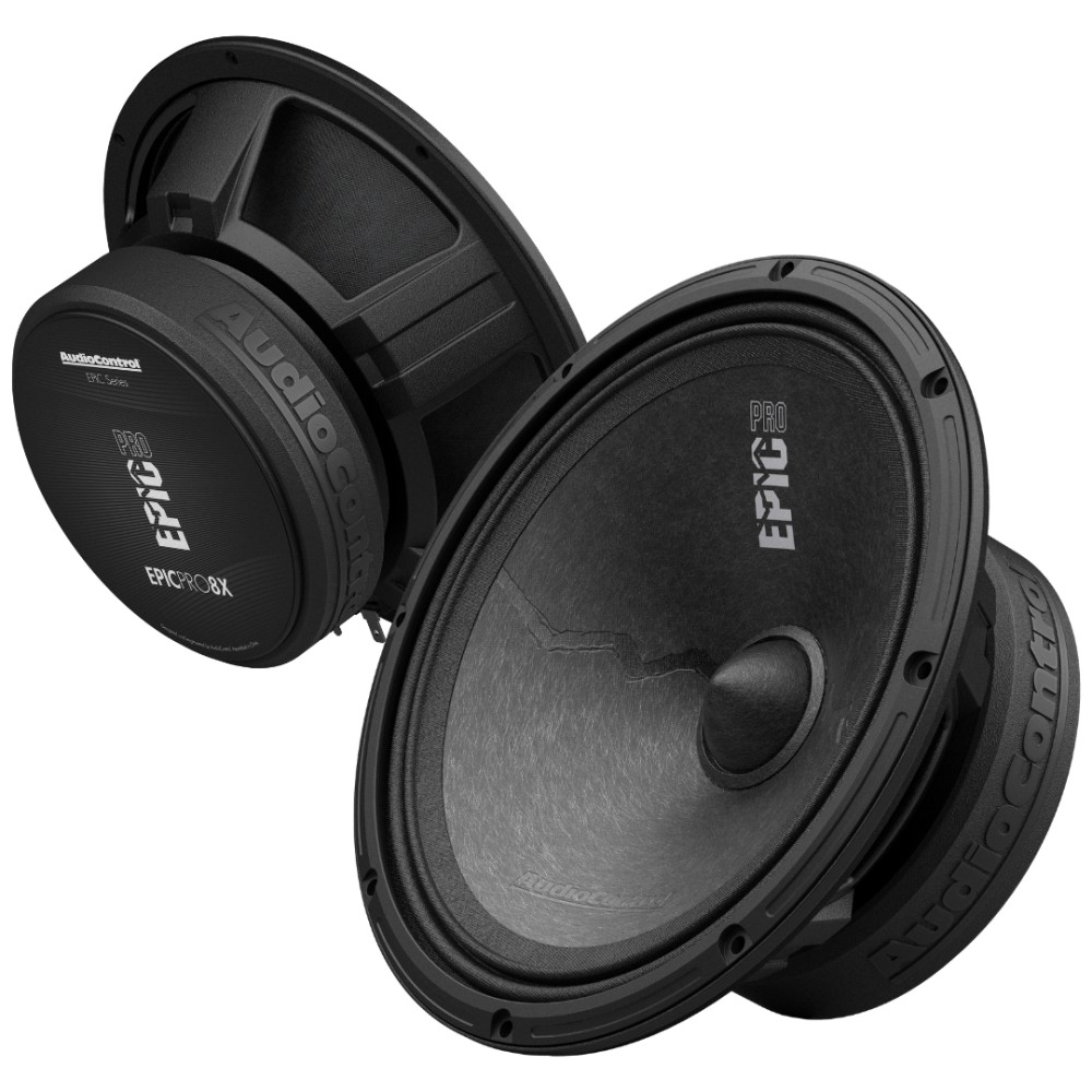 Les haut-parleurs médium AudioControl EPICPRO8X de 20 cm (8 pouces) sont conçus pour offrir un niveau de pression acoustique élevé et une projection sonore claire dans de larges espaces. Optimisés pour une restitution efficace à volume élevé, ils intègrent un condensateur de phase précisément réglé et un puissant moteur qui garantit des performances ciblées sans solliciter inutilement votre amplificateur.