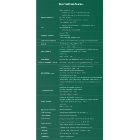Le GOLDHORN DSP10 est un puissant processeur DSP autonome à 10 canaux, conçu pour un réglage audio embarqué sans compromis. Doté de 8 entrées haut niveau, de 10 sorties RCA et compatible avec le système surround SKYATOM, le DSP10 offre une expérience d'écoute immersive axée sur la précision, l'espace et le contrôle. Ce processeur intègre des fonctionnalités avancées telles que le contrôle dynamique du volume sonore et des réglages d'égalisation détaillés par canal pour une reproduction sonore entièrement personnalisée.